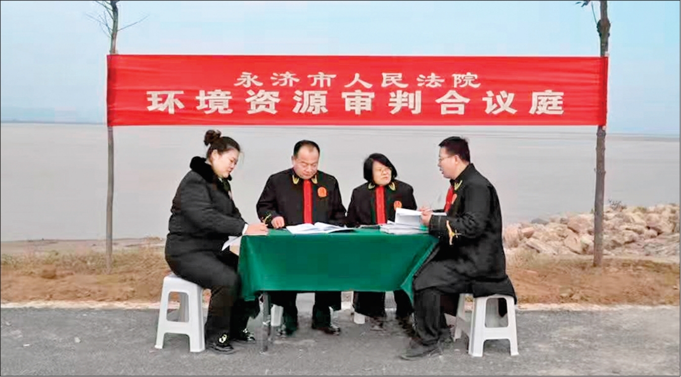 这一理念贯穿于永济市人民法院环资审判的全过程,形成了“1234”工作机制:围绕黄河生态保护“1”中心,依托伍姓湖湿地和蒲津渡遗址两个司法保护基地,成立领导小组、临时党支部、审判团队“3”组织,实现政治、社会、法律、生态“4”效果的有机统一。