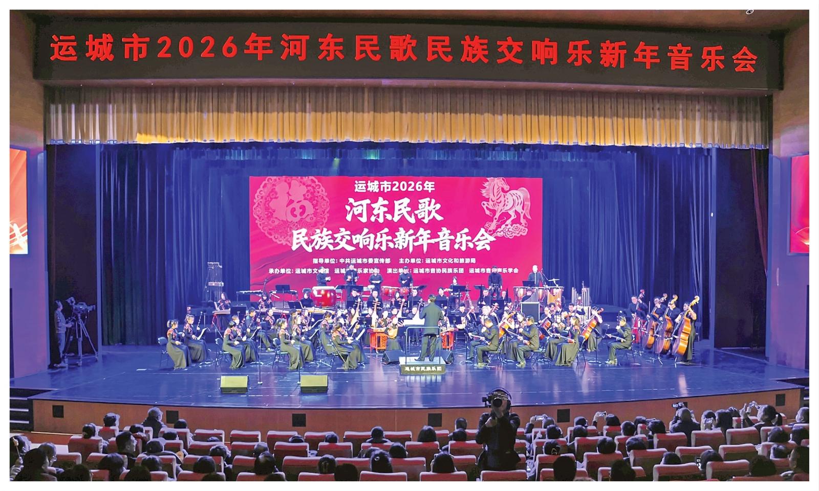 运城晚报讯(记者 李婉玉 赵泽艳 荆毅萍)12月15日晚,运城市会展中心灯火通明、座无虚席。由运城市文化和旅游局主办、运城市文化馆与运城市音乐家协会联合承办的运城市2026年河东民歌民族交响乐新年音乐会成功举办。